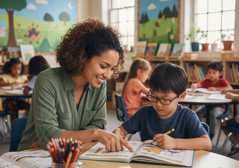 - Apoyo académico: ayudar al niño a comprender los contenidos, adaptando las actividades y materiales según su nivel de aprendizaje.